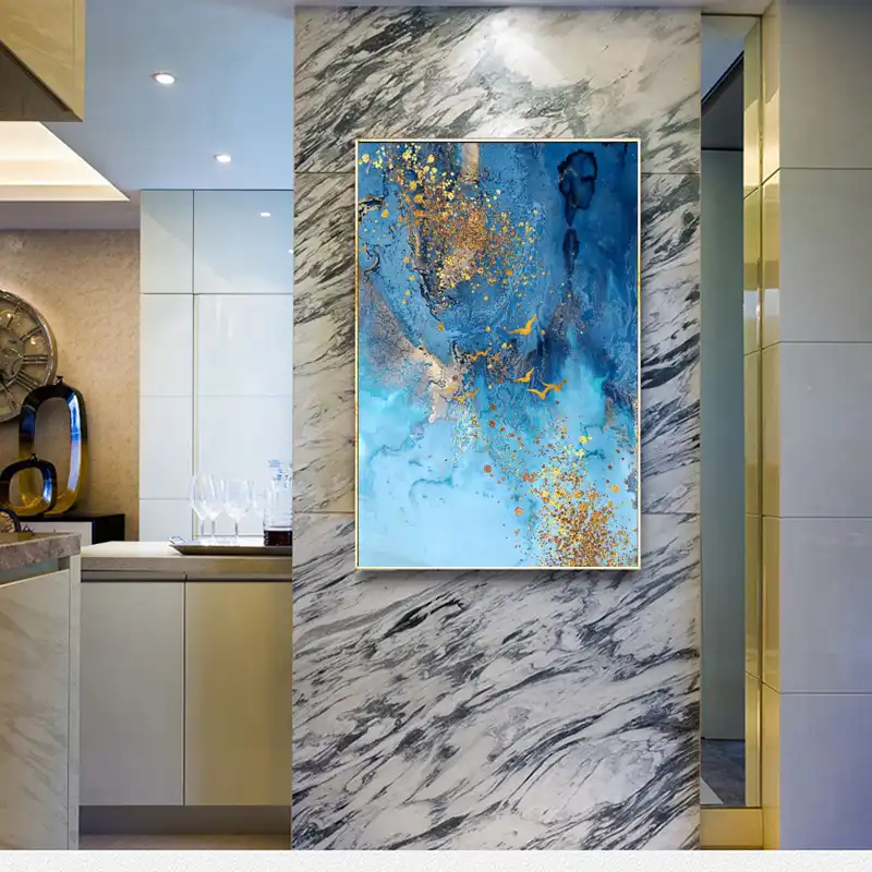Peinture décorative moderne légère, abstrait Simple, peinture murale nordique avec mer bleue et sable doré | AliExpress