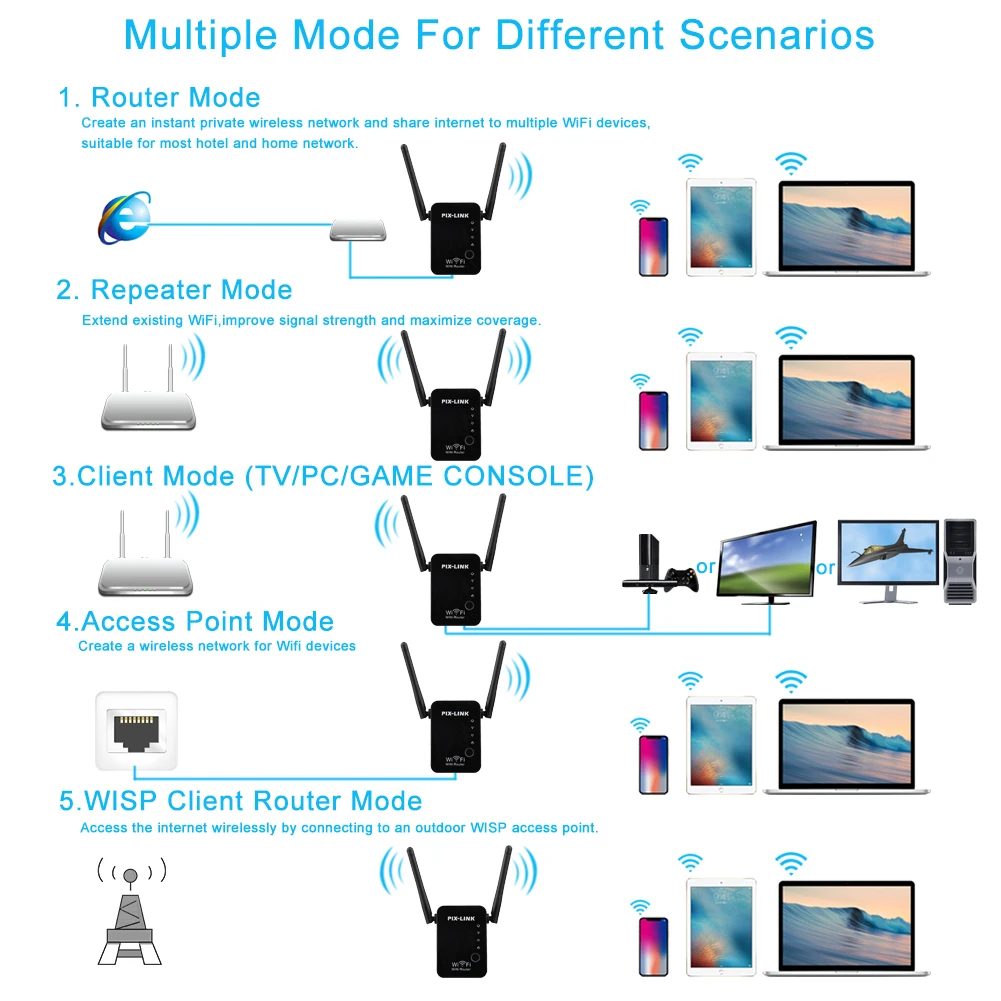 Amazon Com Wifi Range Extender 300mbps Wireless Repeater 2 4g Internet Signal Booster Superboost Amplifier Supports Repeater Ap 2 4g Network With Integrated Antennas Lan Port White Computers Accessories